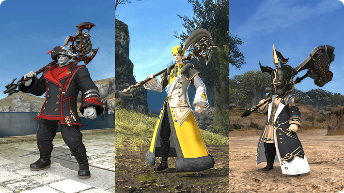 各大國防聯軍的專屬裝備(從左至右:黑渦團、雙蛇黨、不滅隊)