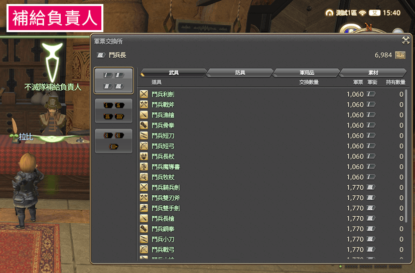 加入大國防聯軍後,你就可以開始收集一種叫做「軍票」的專屬貨幣。只要用軍票,就能兌換各式各樣的物品喔!比如說,大家夢寐以求的「專屬陸行鳥」所需的「陸行鳥券」也是用軍票換的,一定要記得拿!每個聯軍都有一位叫做「補給負責人」的