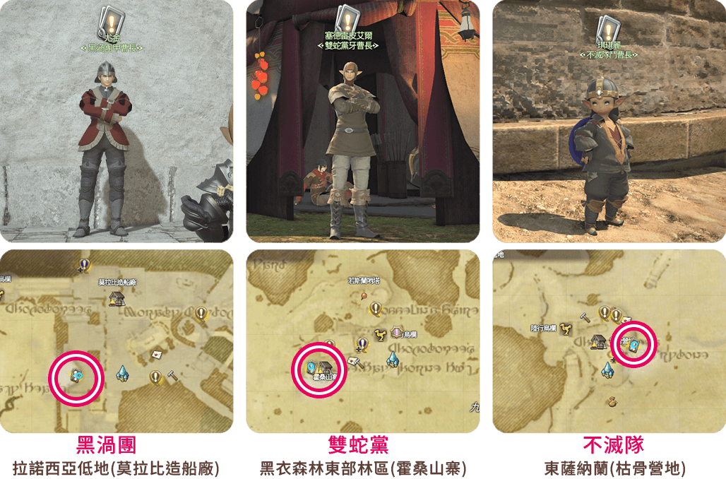 這些任務可以從標示為「甲曹長/牙曹長/鬥曹長」的 NPC 接取。