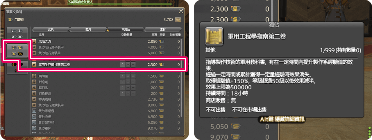 晉升到特定軍階後,可以兌換像是「軍用工程學指南」這類稀有物品,可以提升工匠製作時獲得的經驗,非常實用!