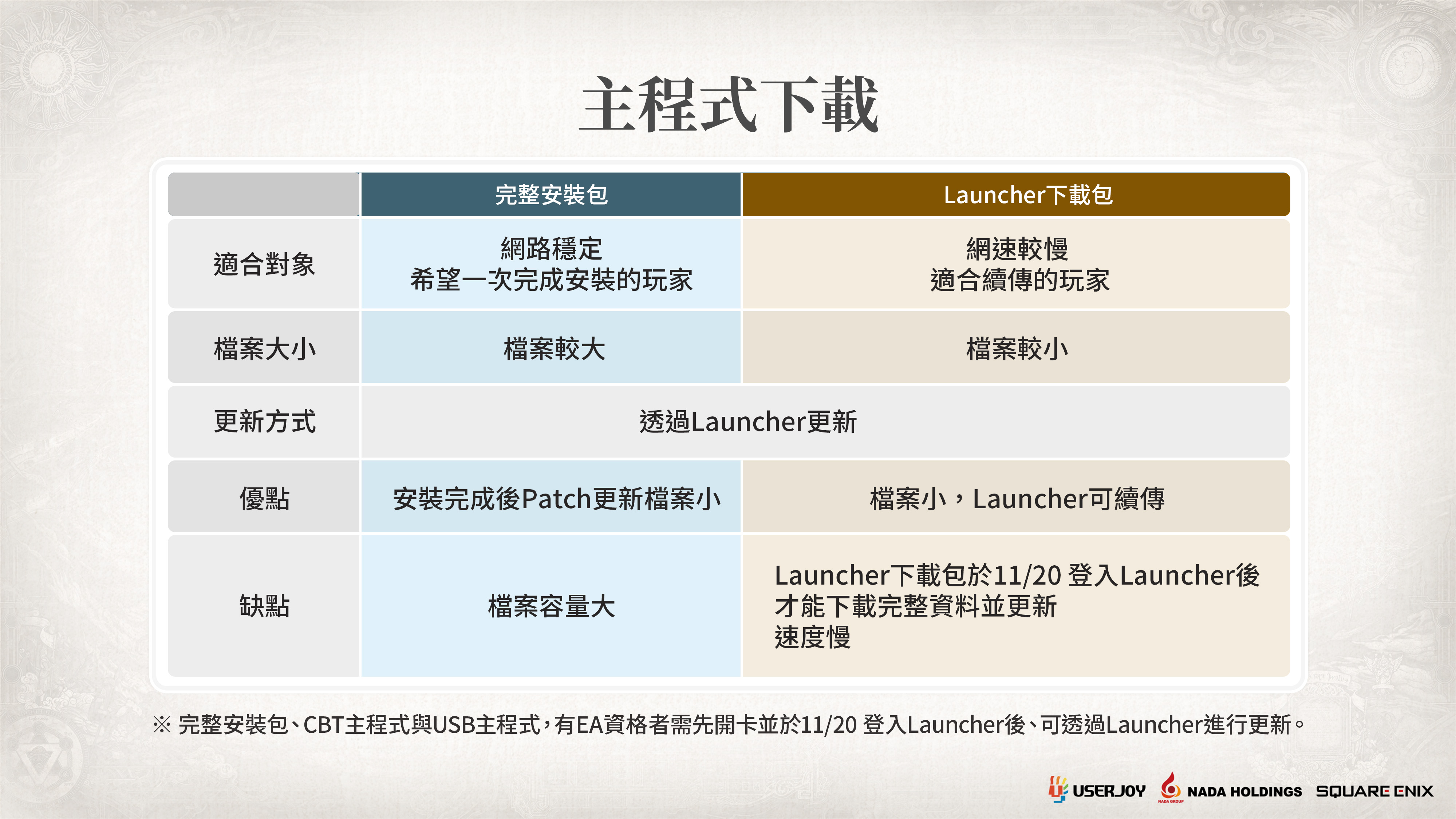 使用完整安裝包的玩家,在11/20開放後僅需要下載更新資料後即可進入遊戲。