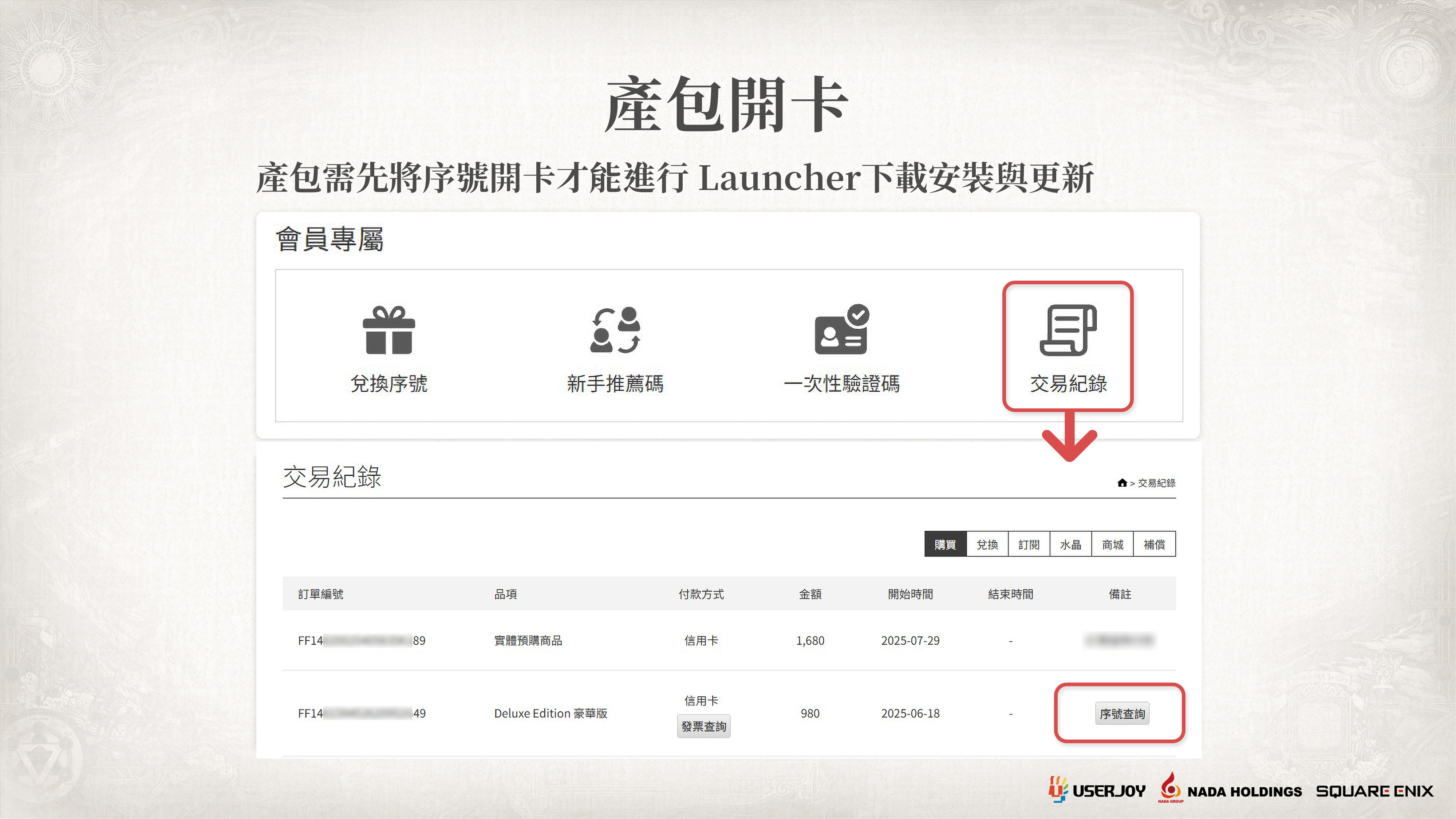 2.您可在【個人中心】的【交易紀錄】中找到您的主程式序號並進行複製