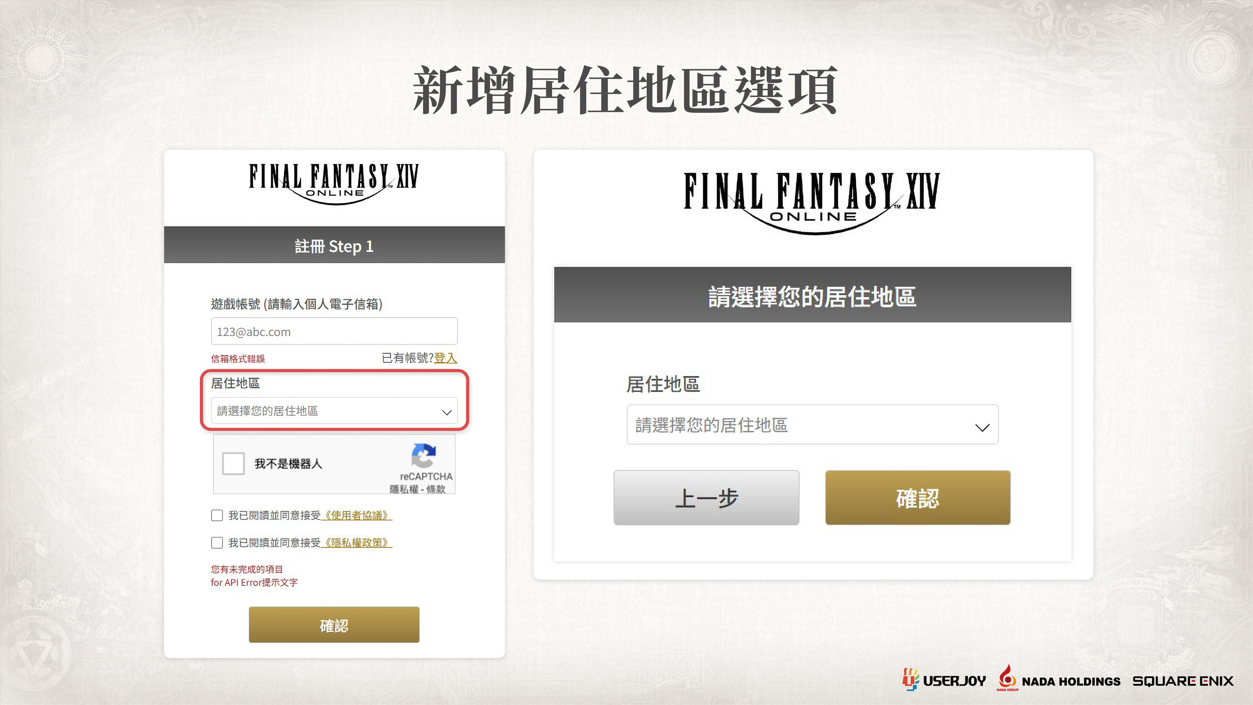 新註冊玩家在註冊帳號時,增加選擇居住地區