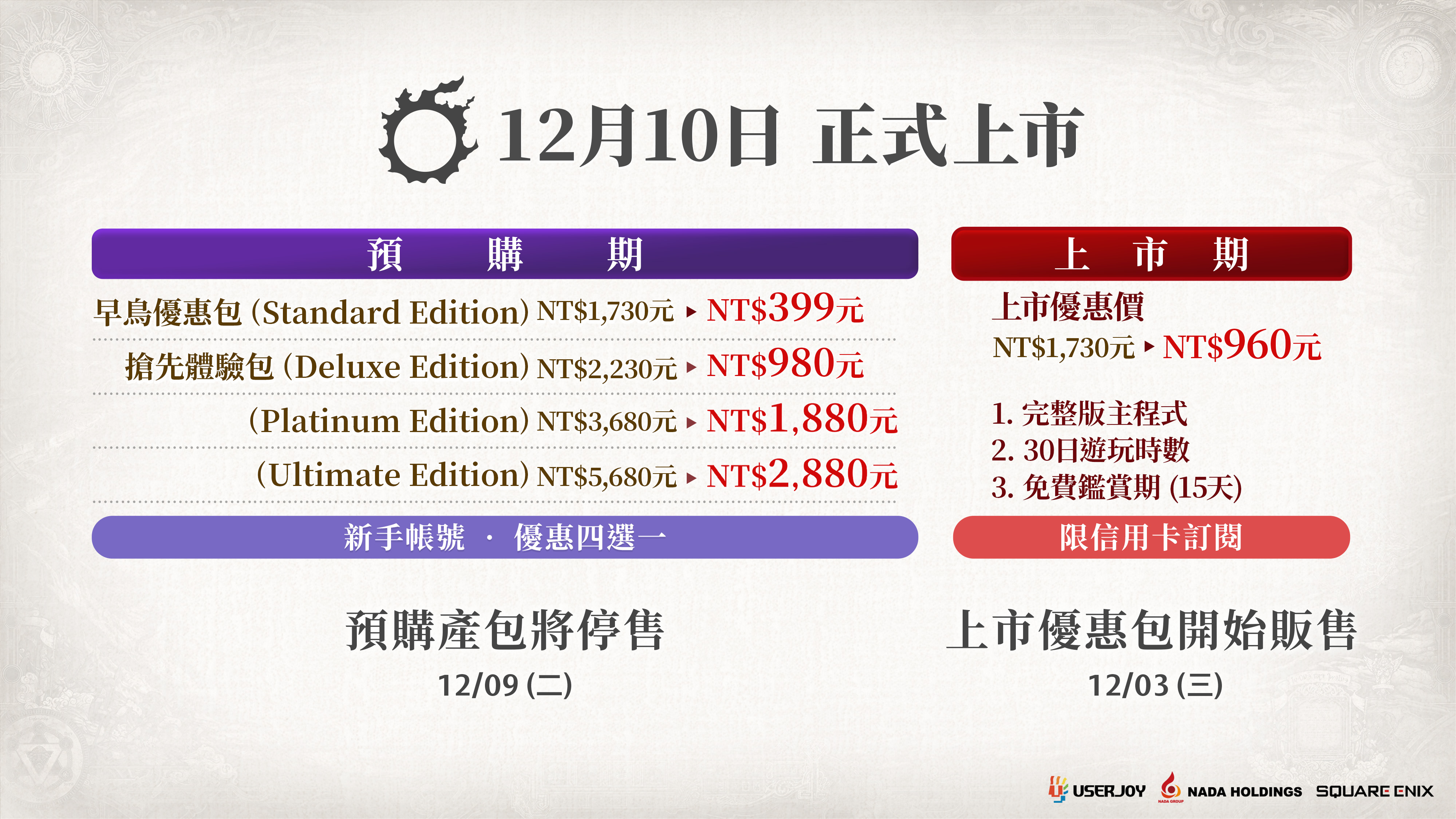 遊戲正式上市,購買早鳥標準版、上市優惠包的玩家