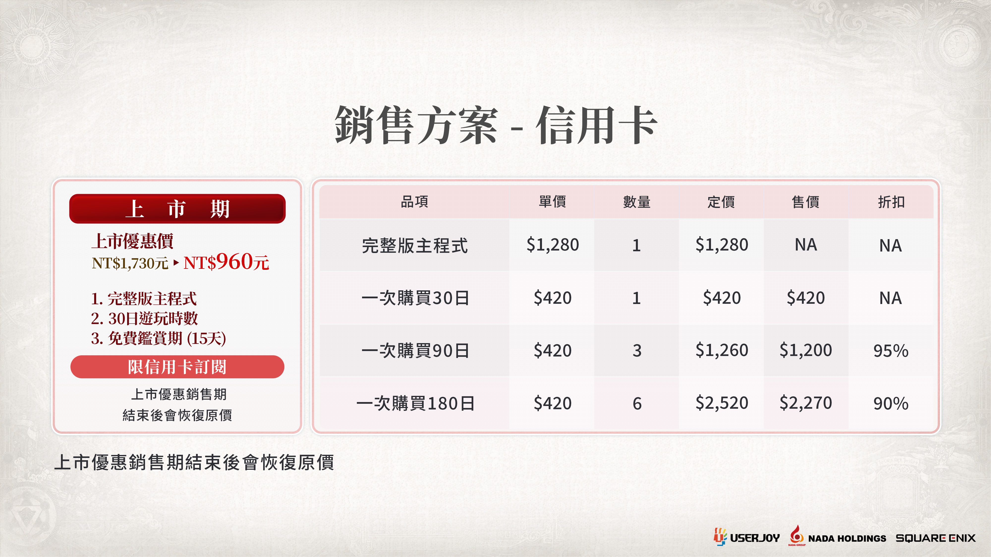 上市後的銷售方案將分為使用信用卡續費、使用水晶續費兩種方案