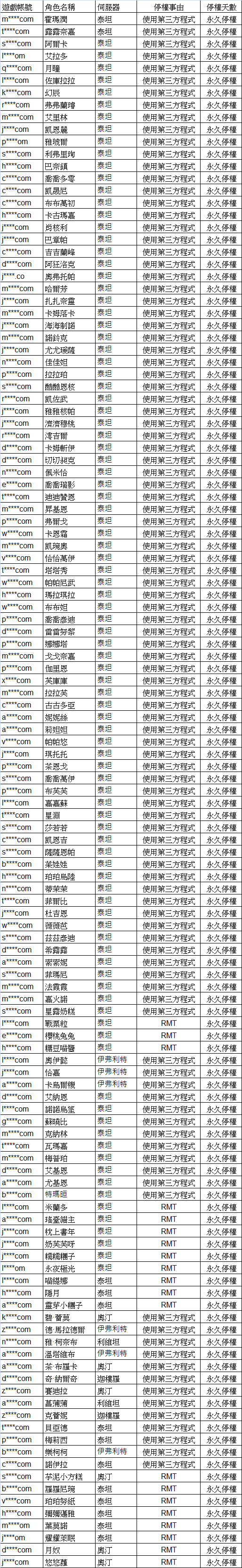 查證部分帳號涉及 RMT(Real Money Trading,現金交易)、使用第三方程式等違規行為,