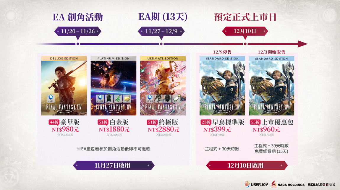 早鳥預購的早鳥標準版、豪華版、白金版、終極版將會於該日停止販售