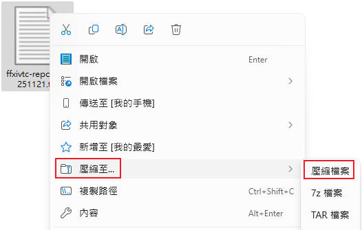 7.對著txt檔點擊右鍵【壓縮至】->【壓縮檔案】