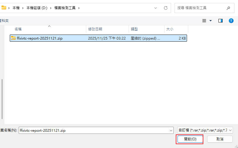 10.選擇剛剛的壓縮檔並點擊開啟即可附加檔案