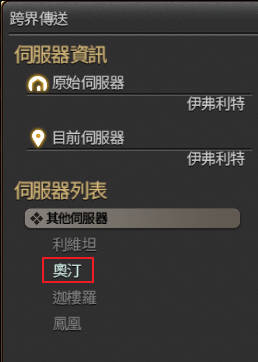 2.您於左方列表選擇可前往的伺服器