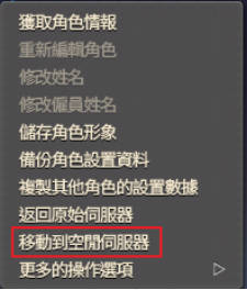 1.選擇您要移動的角色,並點擊右鍵,選擇【移動到空閒伺服器】