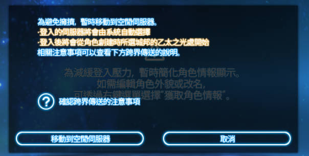 您可在大廳中選擇角色,移動到空閒伺服器進行遊玩